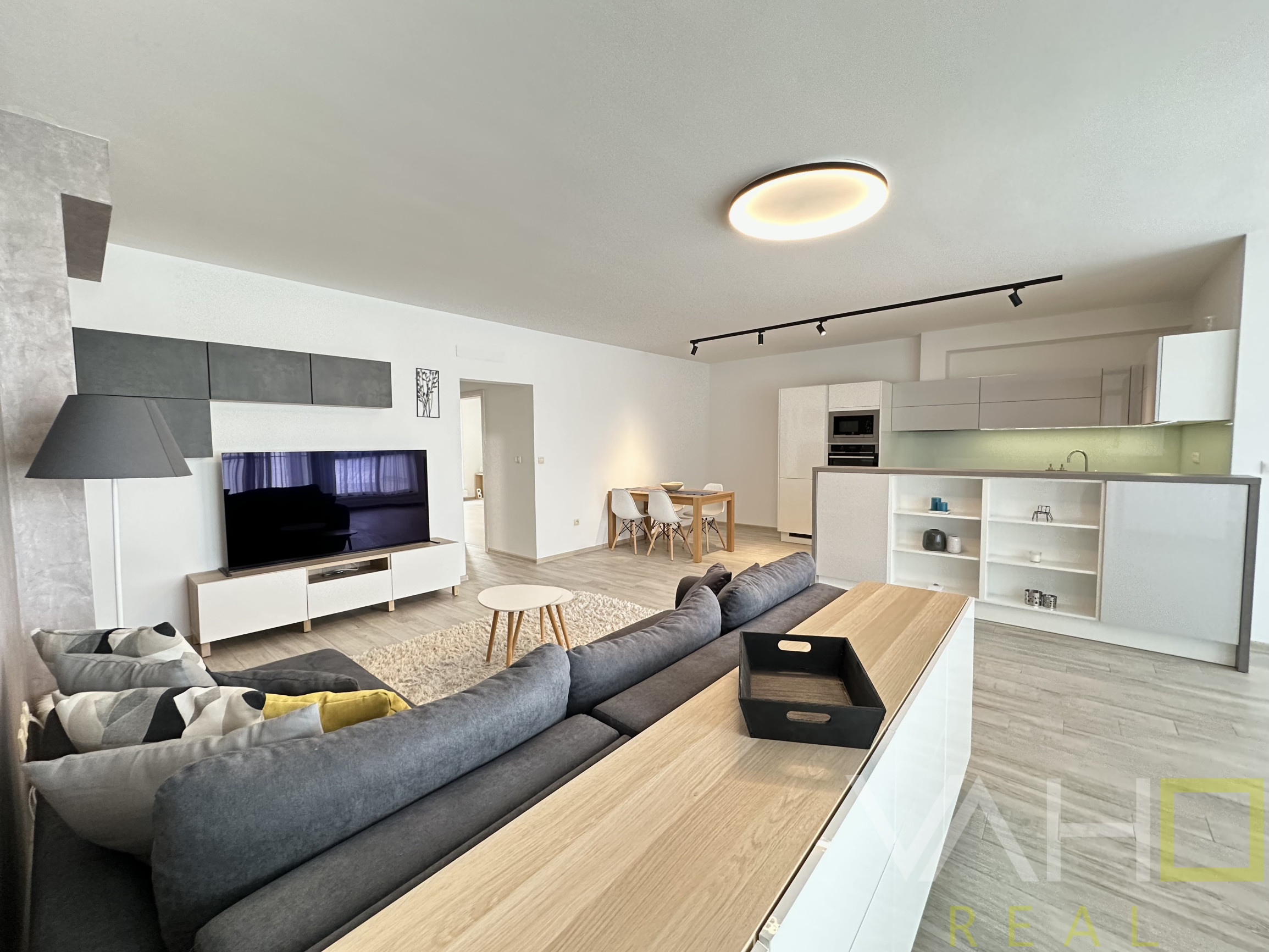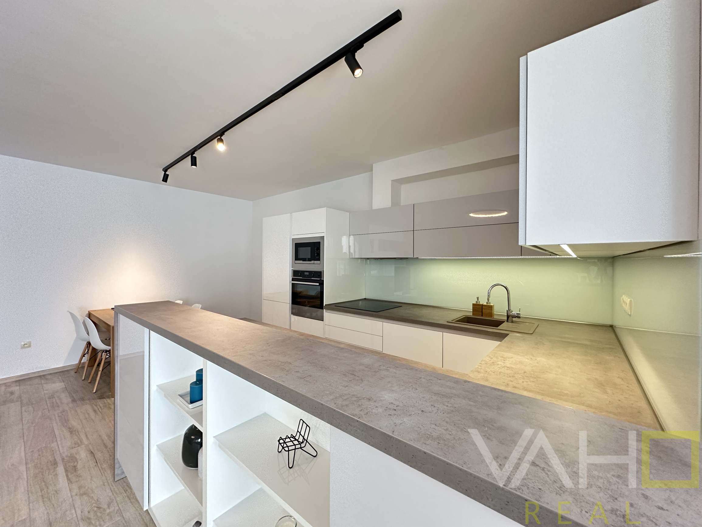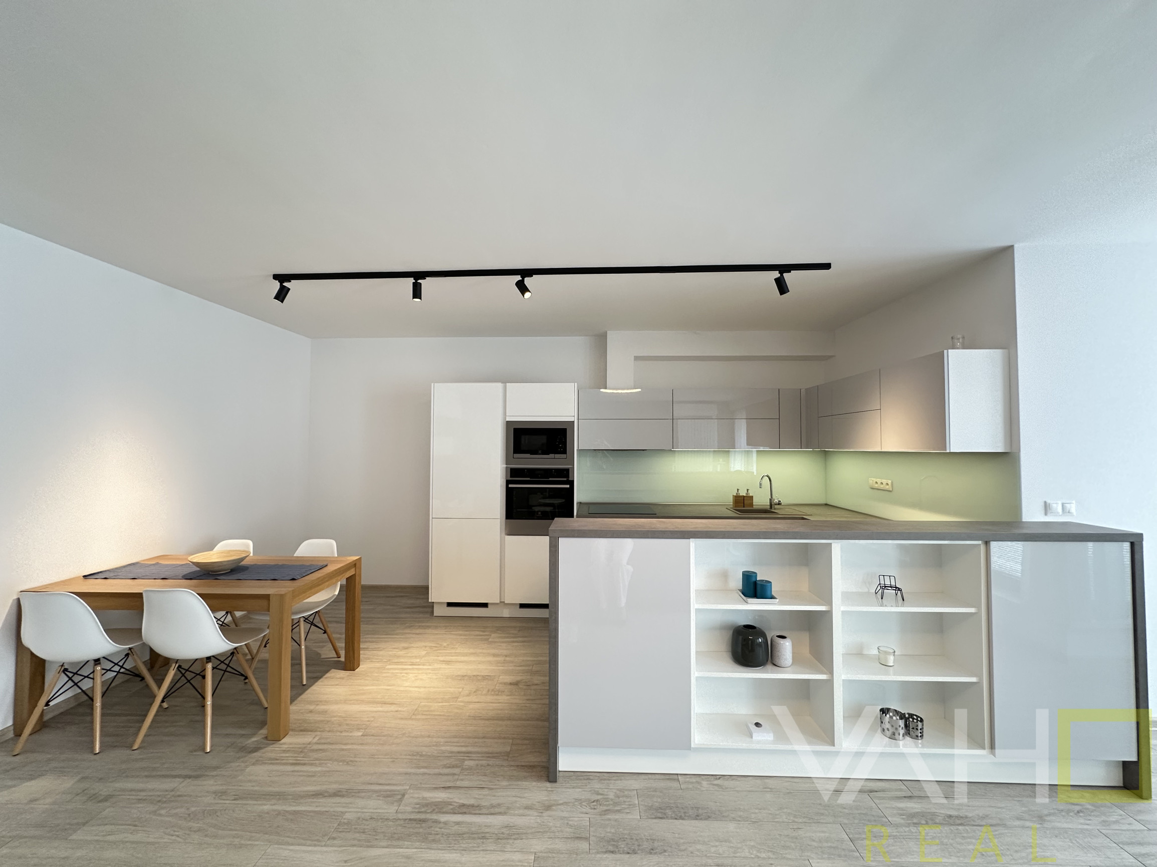 • Veľká, otvorená obývacia izba spojená s kuchyňou na mieru, so zabudovanými elektrospotrebičmi a jedálenským kútom – ideálne miesto pre rodinný život aj návštevy