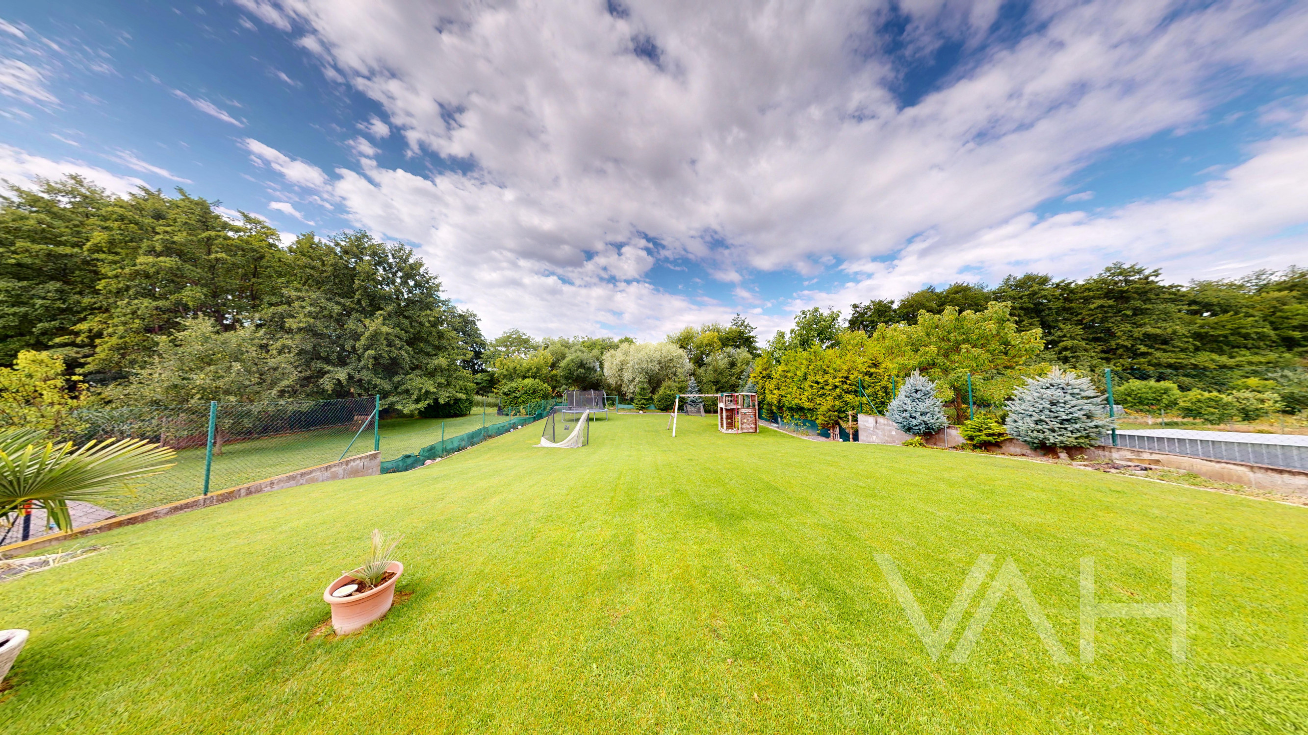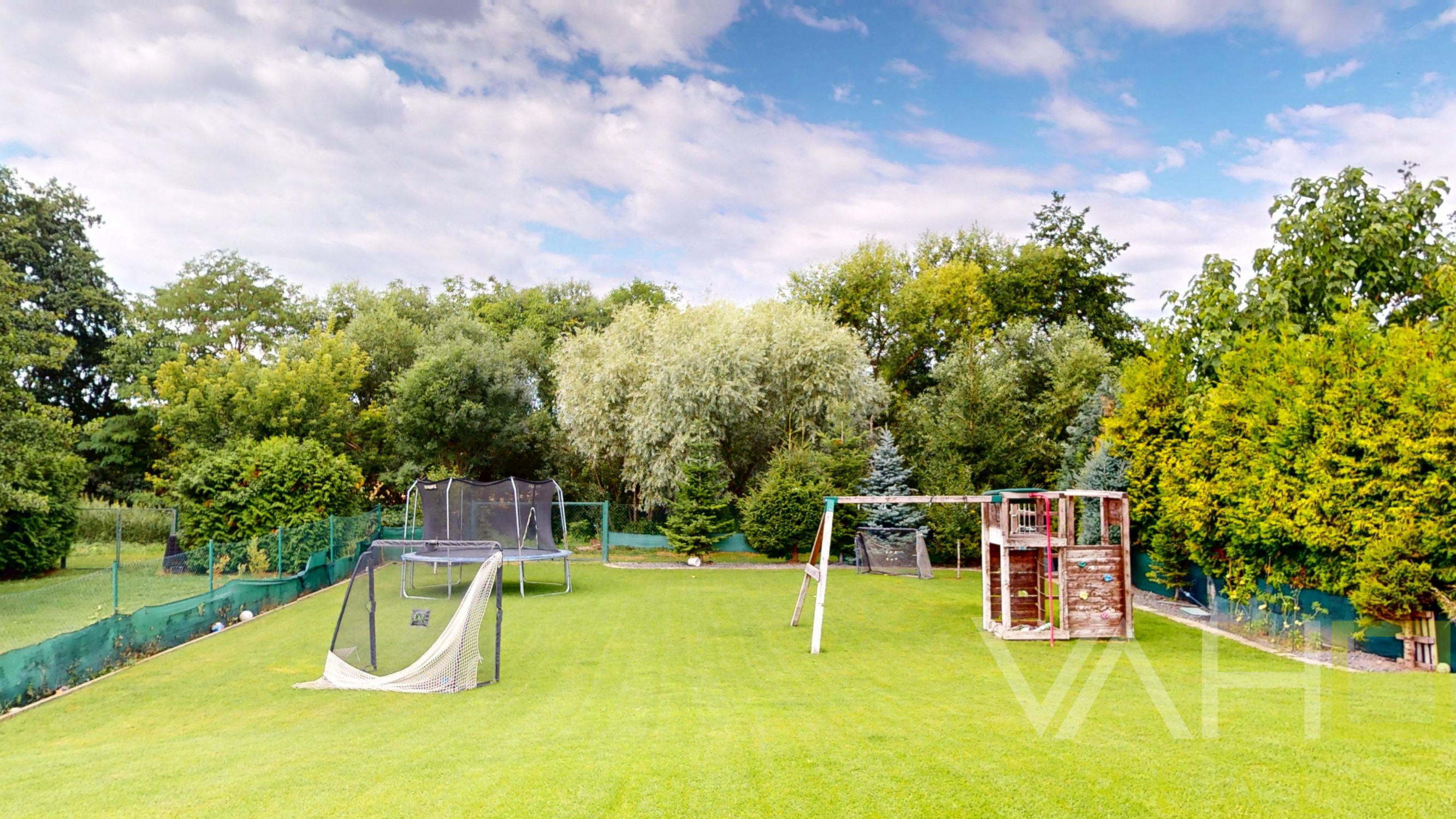 - Záhrada starostlivo upravená: tráva, stromy, automatická závlaha