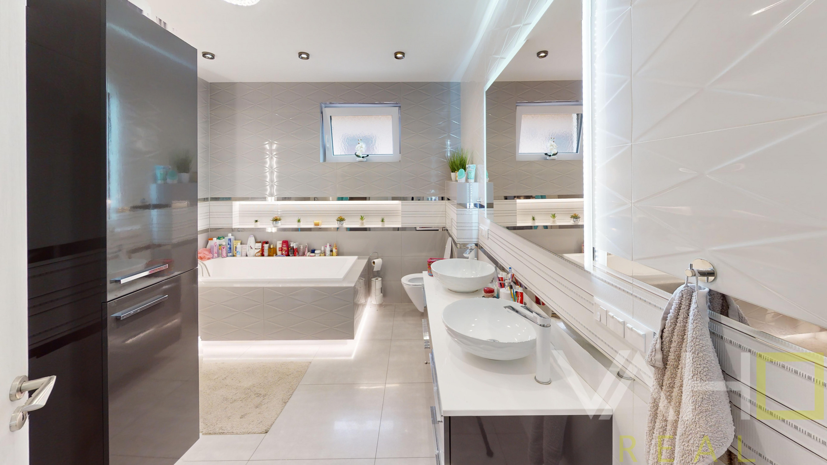 - Kúpeľňa s vaňou aj sprchovým kútom