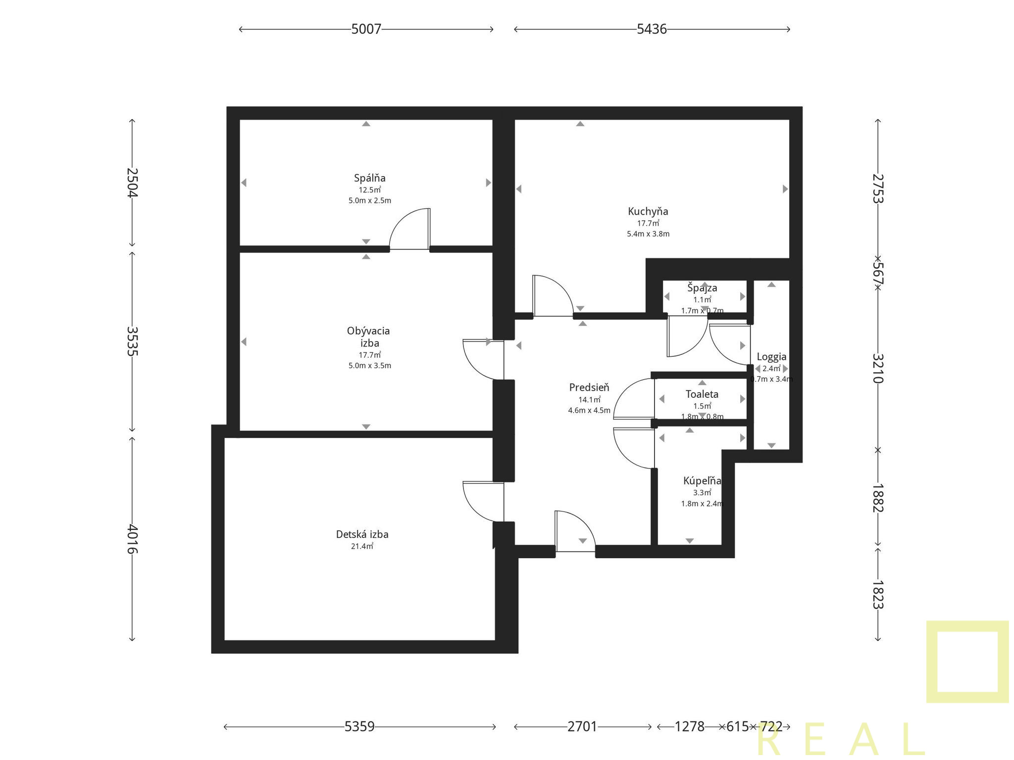 ✔ dispozícia s potenciálom úpravy na 4-izbový byt