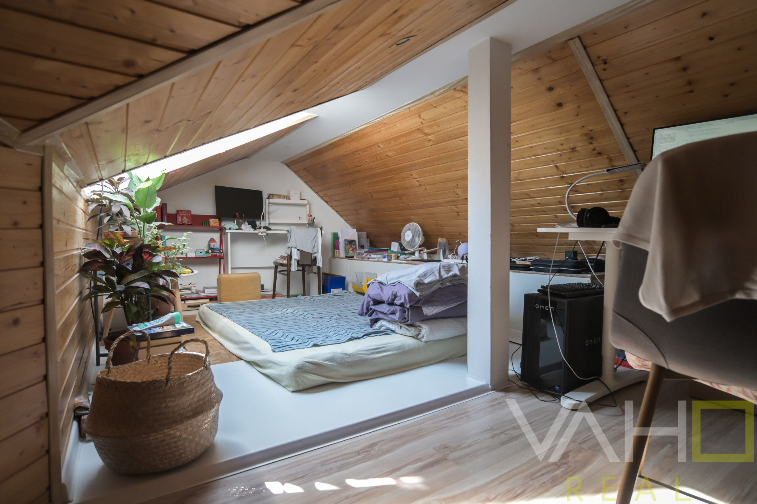 • mezonín využívaný ako spálňa / pracovňa, vstup do podkrovia rebríkom, k dispozícii ďalších cca 10 m2 obytnej plochy