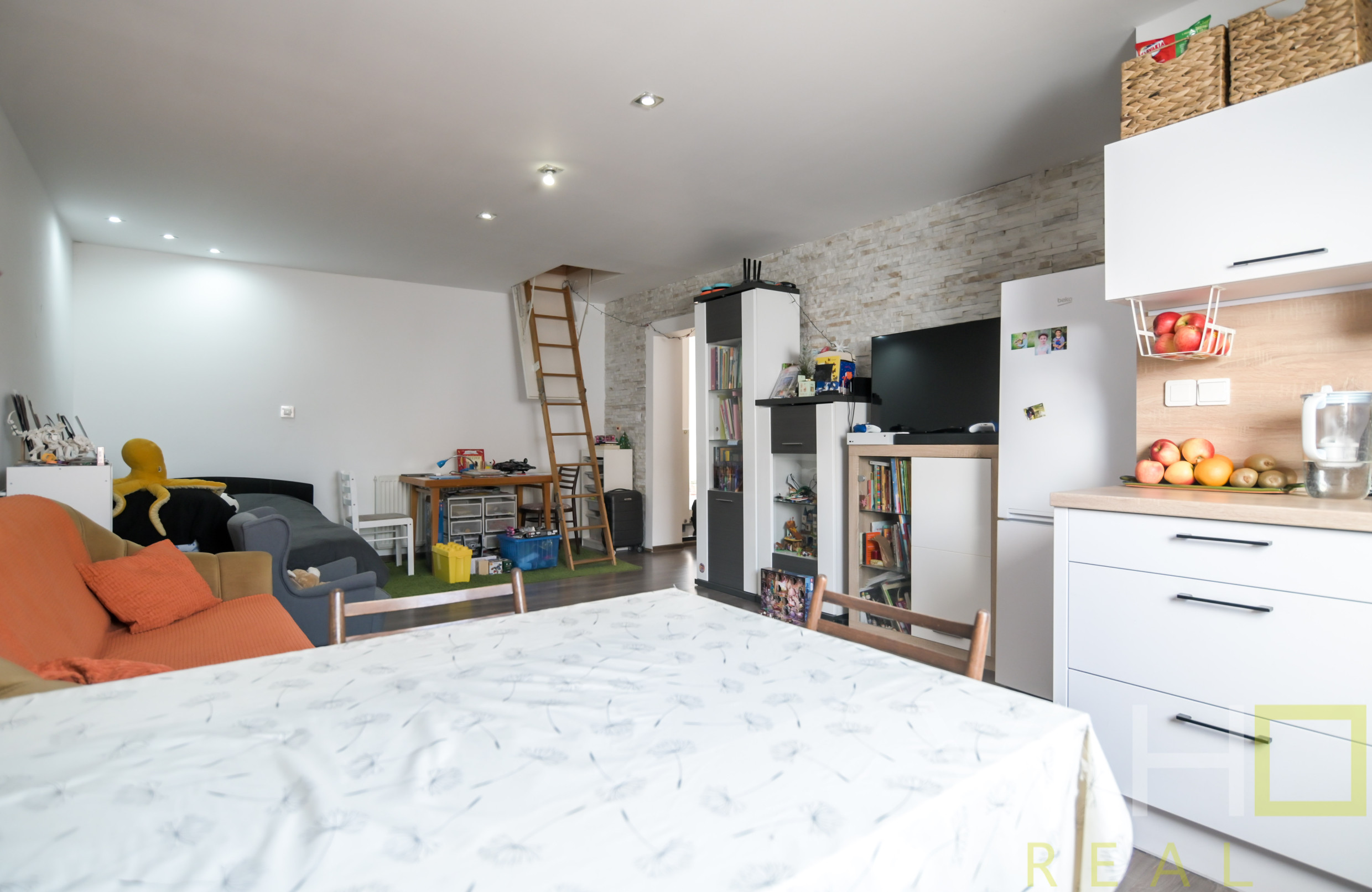 • obývacia izba prepojená s novou kuchyňou