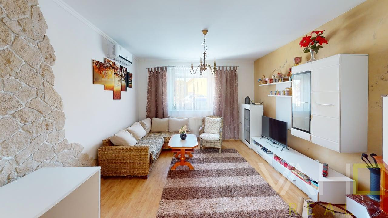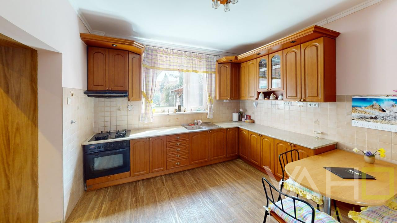 Dispozícia RD : vstupná chodba ,detská izba , kúpeľna spolu s WC , komora-technická miestnosť kde je aj prístup do podkrovného priestoru, kuchyňa,obývacia izba,spálňa a jedna izba sa nachádza v prístavbe so samostatným vstupom kde je aj vstup do pivničky.